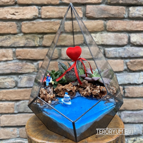 XL boy el yapımı geometrik cam içerisinde teraryum tasarım.